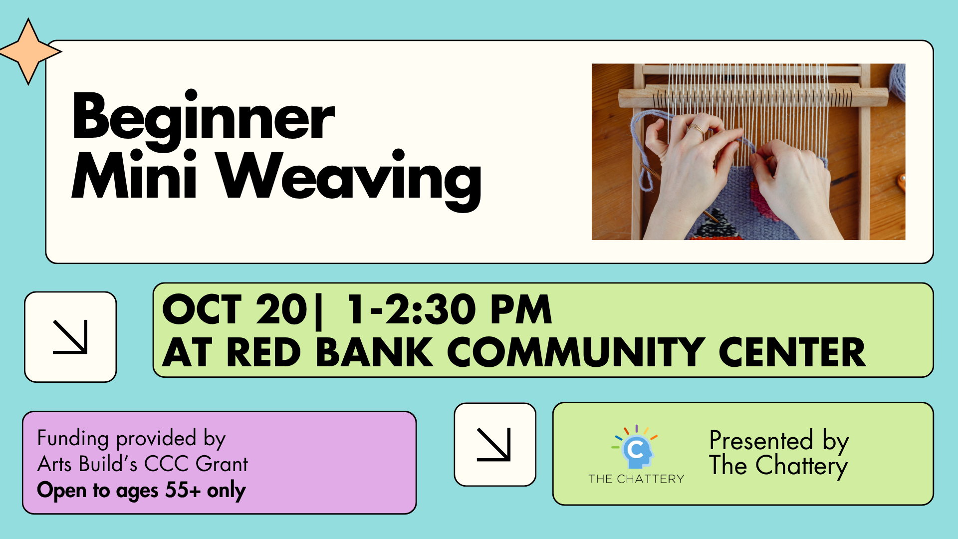 This class is in partnership with The Chattery and the City of Red Bank. Funding provided by the Arts Build's CCC grant.