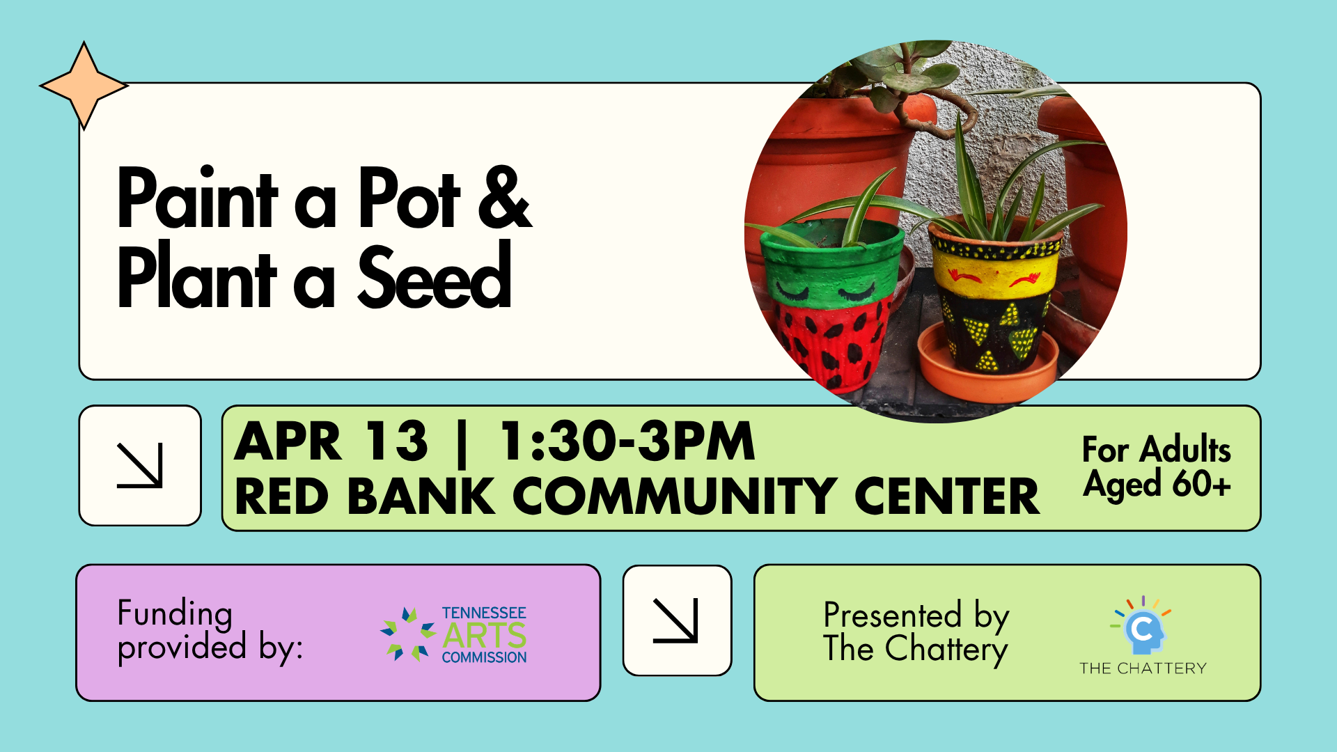 Decorate a pot, plant a seed, and reflect on what you’d like to grow this season. This guided creative experience blends art-making and nature to support mindfulness, intention-setting, and personal growth.