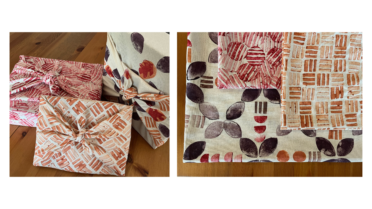 We’ll draw inspiration from the colors and textures of fall to create your own patterns on two small and one medium furoshiki — perfect for wrapping gifts, dressing up a table, or adding a handmade touch to everyday life. Along the way, we’ll talk about pattern repeats, mixing colors, and simple techniques to get great results.
