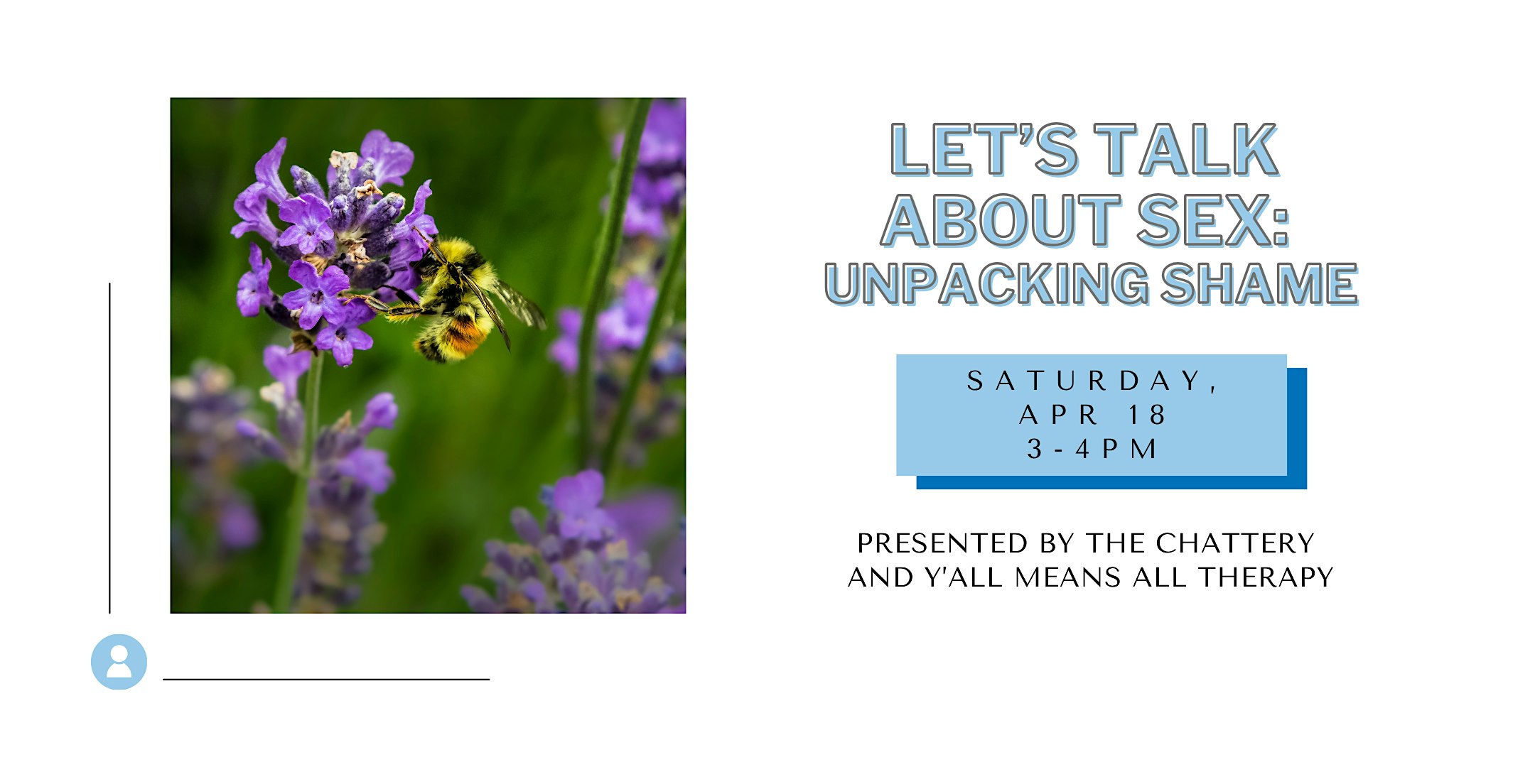 Additionally, resources and next steps will be provided. A related support group for folks looking to feel more comfortable with sex and their own bodies will be offered in May by Yall Means All Therapy. Commitment to support group is not required to attend this course.