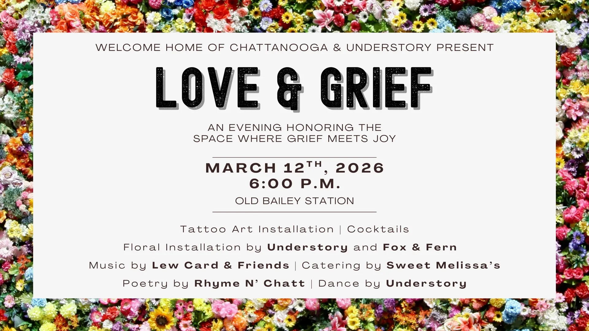 A participatory floral art installation by Understory and Fox & Fern beckons you to allow your heartache and happiness to co-exist. Poetry by Rhyme N’ Chatt speaks to the heart’s capacity for both sorrow and serenity. Love & Grief offers a safe space to find comfort and celebration amongst friends both old and new.