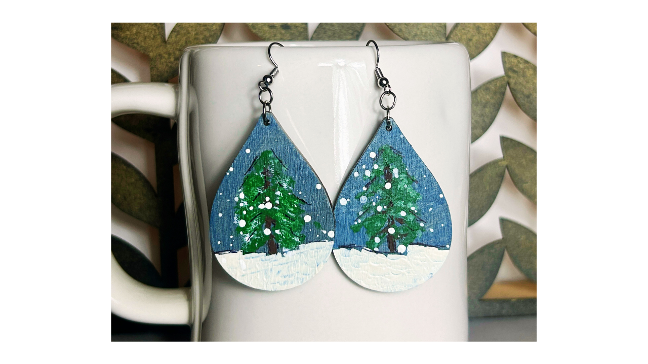 Don’t let the idea of a cold, snowy winter day keep you from taking this class. Prepare for the winter and holiday parties with these Hand-Painted Wood Earrings, perfect for you or to give as a gift.