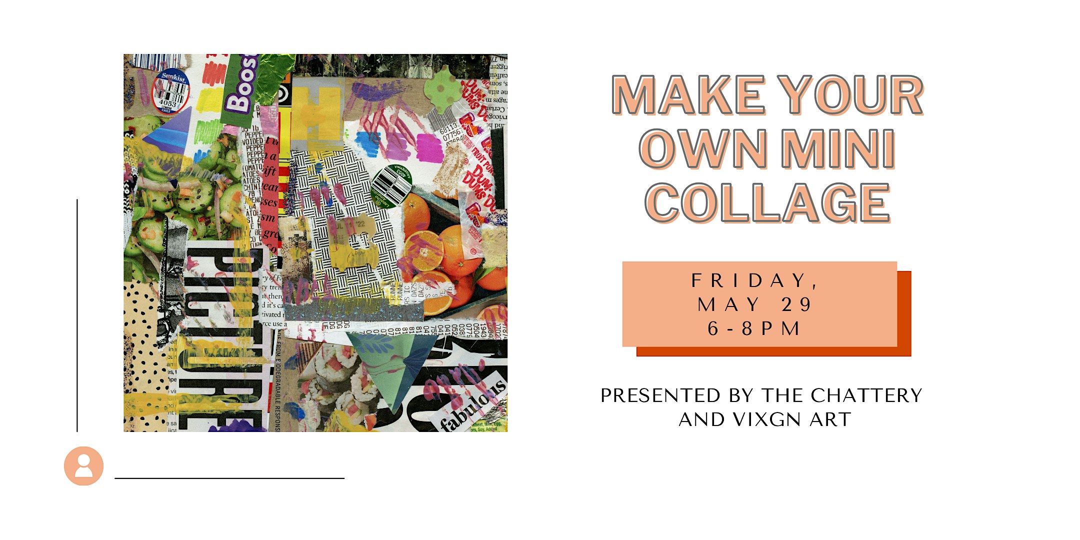 In this single session, Vix will teach you all about the world of collage and how to create interesting compositions to create your own mini collage. You will leave with your own 4x4 mini collage, framed and ready to be displayed, as well as the knowledge to continue practicing your craft.