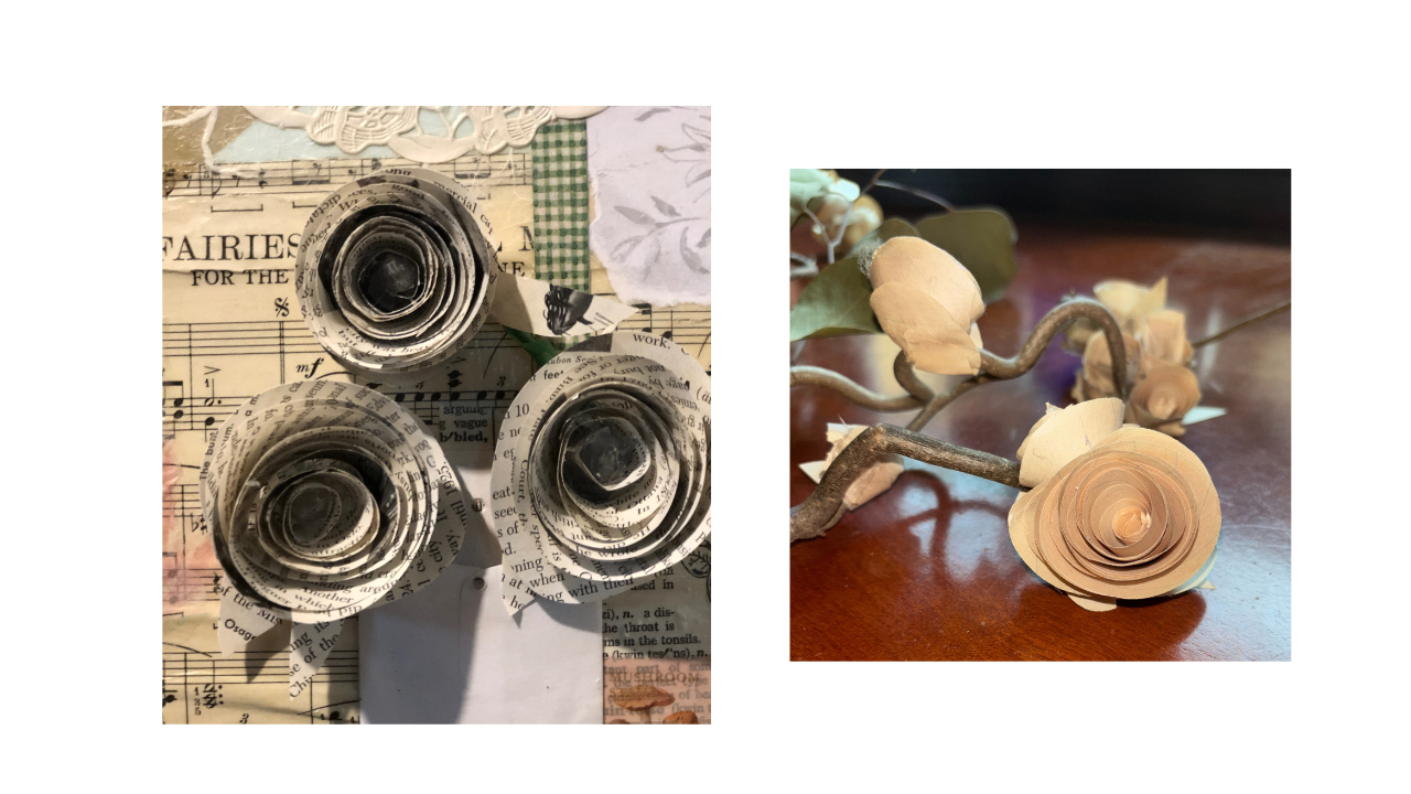 Join in this calming craft of making paper roses from upcycled book pages. Keep it simple or combine the flowers into a wreath or bouquet to add warmth and beauty to your day.