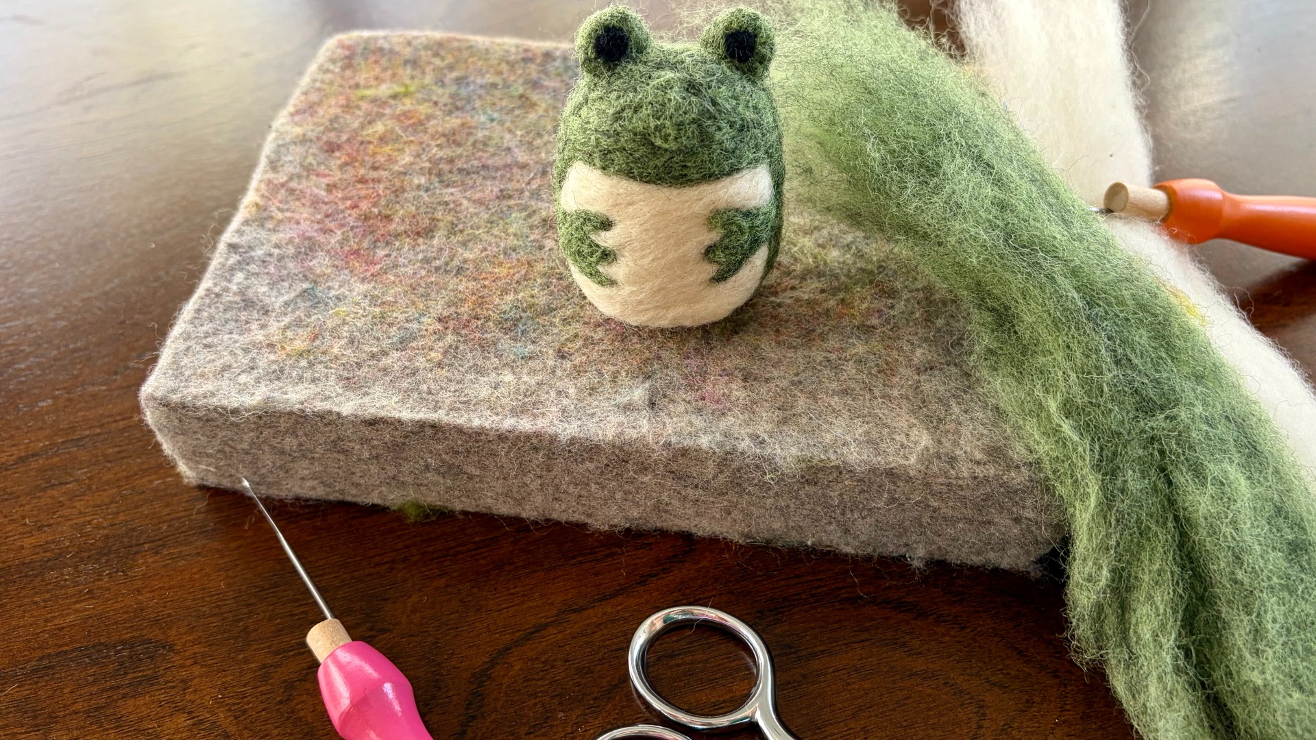 Whether you're interested in needle felting for sculpture of figurines and adorable kids toys or you want to learn it for tapestry and wall hanging art - we can get you started!We will discuss all the materials and tools required for needle felting, learn some techniques and tricks and review best practices for the best results.In class we will walk step by step through making our own simple and adorable little frog figurines. Everyone will get to take home their finished frog AND a beginner set of basic tools required to needle felt at home!