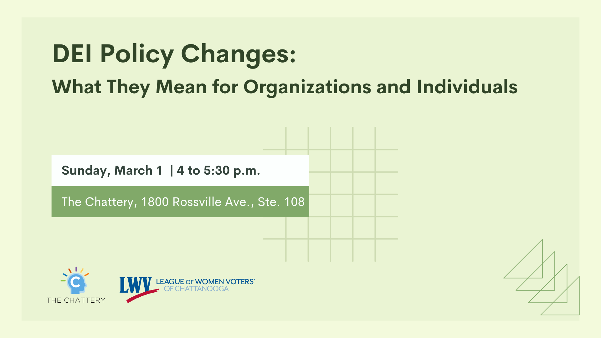 This class is presented in partnership with League of Women Voters Chattanooga and The Chattery.